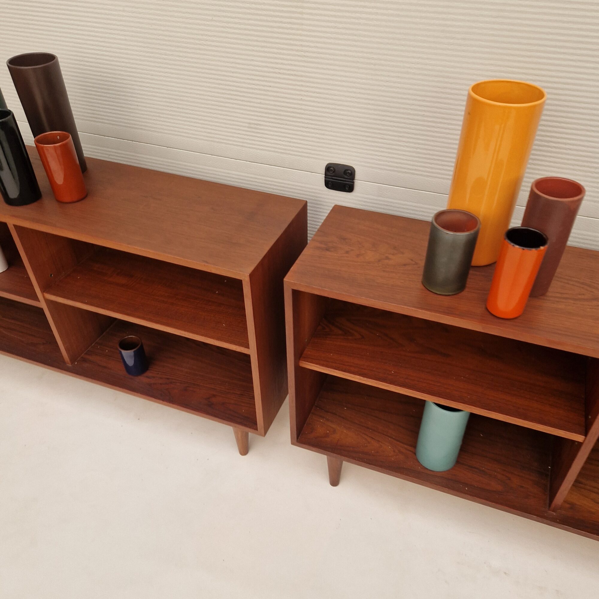 De kastjes staan op houten poten.